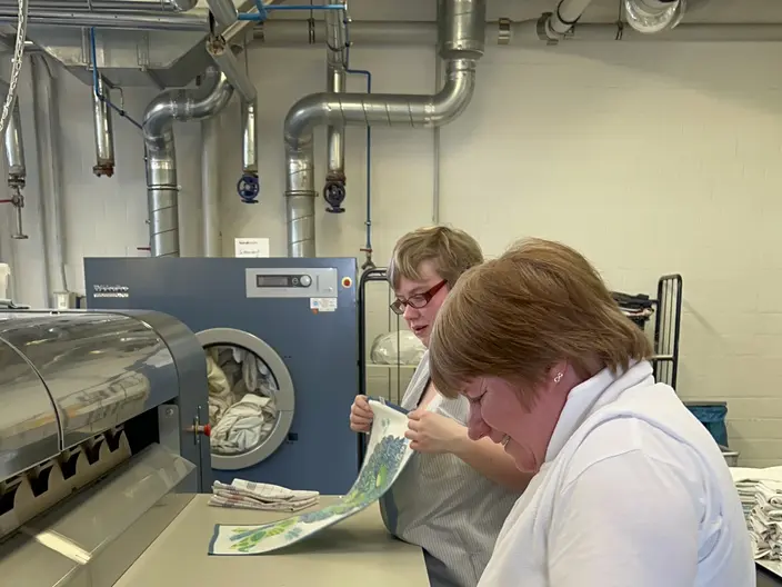 Ob Waschen, Trocknen, Legen, Bügeln und Mangeln, in den CJD Altmark-Werkstätten