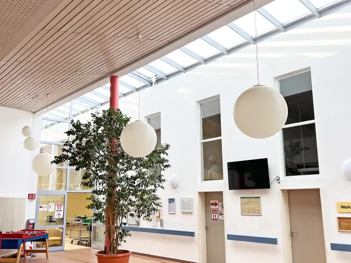 Es gibt folgende Arbeitsbereiche: Reinigung, Küche, Wäscherei, Tischlerei, Garten- und Gemüsebau, Montagebereich wie Kunststoffbearbeitung, Metall, Montage und Verpackung sowie das NETZ-Werk, ein Arbeitsbereich für Menschen mit psychischen Beeinträchtigungen.