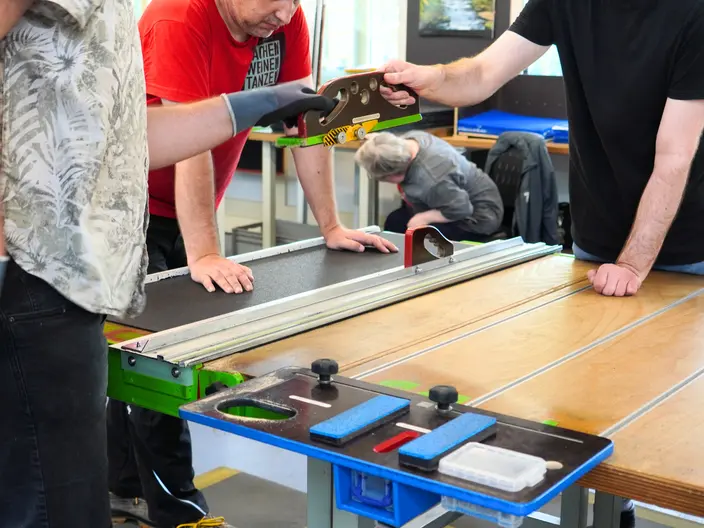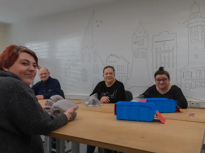 Sowohl sitzende als auch stehende Tätigkeiten können in verschiedenen Arbeitsbereichen übernommen werden. So werden unter anderem Matten auf Maß zugeschnitten, Schellen montiert oder Bänder gewickelt und verpackt.