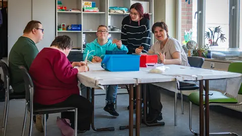 Die Fördergruppe richtet sich an erwachsene Menschen mit erhöhtem Unterstützungsbedarf, die derzeit keiner Beschäftigung in einer Werkstatt für behinderte Menschen nachgehen können. Sie bietet ein tagesstrukturierendes Betreuungsangebot, das Sicherheit, Orientierung und Gemeinschaft im Alltag schafft.