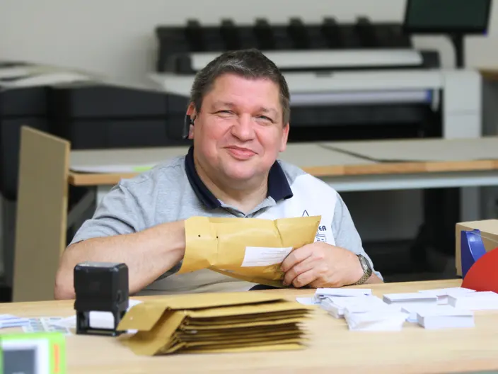 In diesem Bereich werden verschiedenste Verpackungs-, Sortier- und Montagearbeiten durchgeführt. Dazu gehören das Zählen, Etikettieren und Verpacken von Kleinteilen, das Falten von Kartons sowie das Sortieren, Montieren und Zusammenstellen von Produkten.